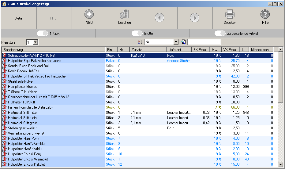Zum Abschalten der Artikel-Sperre bei Unterschreiten der Mindestmenge, stellen Sie die Mindestmenge auf 0. Der Lagerbestand wird dann weiter heruntergezählt, Sie können jedoch weiterhin auf den Artikel zugreifen.